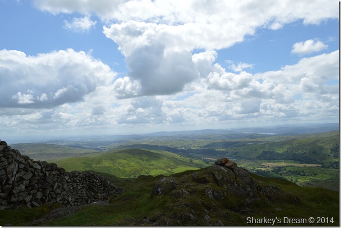 We had caught up with one of the couples we had spoke with back on Harter Fell by the time we reached Kentmere Pike summit who were just finishing of their lunches whilst sat on the stone slabs used to hop over the stone wall.