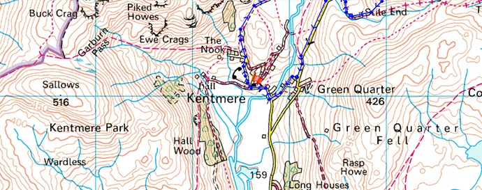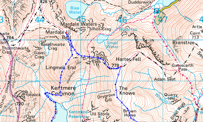 Way over on the other side of the Valley we spot teams of walkers who had oddly left The Nan Bield Pass path above Kentmere Reservoir for a rather odd route beneath Smallthwaite Knotts, judging by the size of the group & the fact they were carrying full kit we could only assume that they were part of the Duke of Edinburgh scheme.