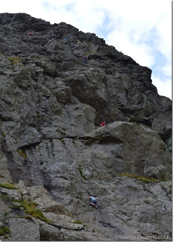 From my ascent I could pick out well over a dozen rock climbers covering all A, B & C Buttresses, here the safety aspect of rock climbing was evident & a joy to hear that each member seemed to have a colour code & a number, so lets say your number was Blue 11; once the instructor had called your code the climbers each respectively yelled back that they were safe even if they were on separate routes which most of them were making the call back rather LOUD.