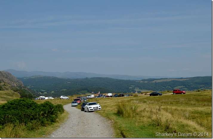 I continued up Walna Sca under a scorching afternoon sun which was bearing down & bringing a sweat on before any hard work had been done. Here the super market style parking continues right up to & beyond Boo Tarn itself. |