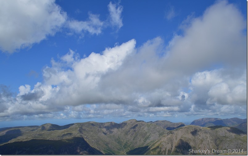 Here, Scafell, Scafell Pike, Ill Crag & Pen can be seen as the high cloud cast shadow over the Scafell range. |