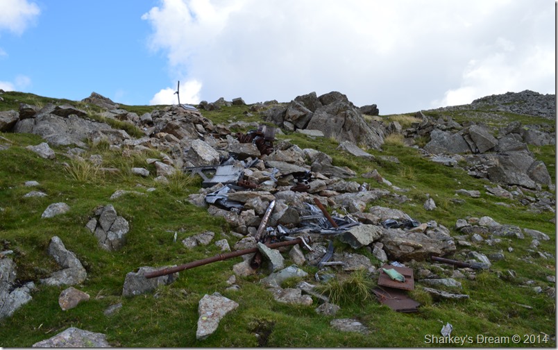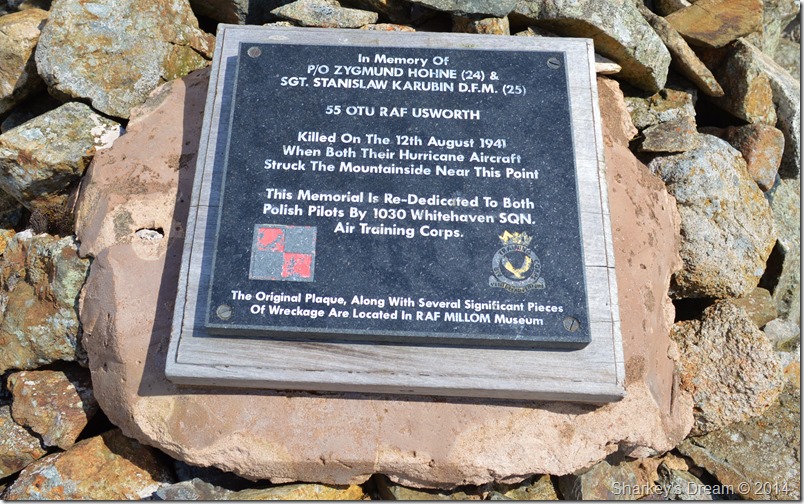 From the summit of Slight Side we doubled back before taking a pathless descent in the direction of Broad Tongue, not before coming across the the Memorial Plaque to the two lost Airmen who’s Hurricane Aircrafts both crashed just below the summit of Slight Side in low cloud back in August 1941 |
