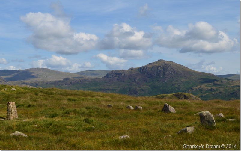 Harter Fell (Eskdale) seen behind one of five Stone Circles found at Brat’s Moss. |