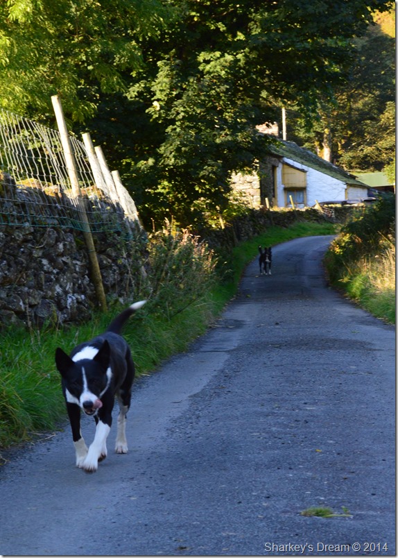 I don’t think I’ve ever had the pleasure of meeting two friendlier farm dogs than these two Collies who greeted us with, as you can see, wagging tales & tongues at the ready. The ‘back up’ Collie soon followed suit as if to say welcome as they circled us all the way through the grounds of the farmyard which when I look back, lead us to a bit of a navigational error. |
