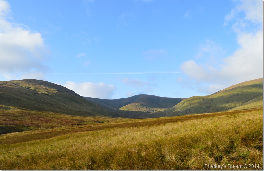 The wild grasses were alive in autumnal colour once after leaving Rush Gill behind. Ahead is Stybarrow Dodd north east ridge which looks positively inviting with the flanks of Hart Side seen in shadow to the left of the valley while over on the right is Lurge Crag forming the lower slopes of Great Dodd. |