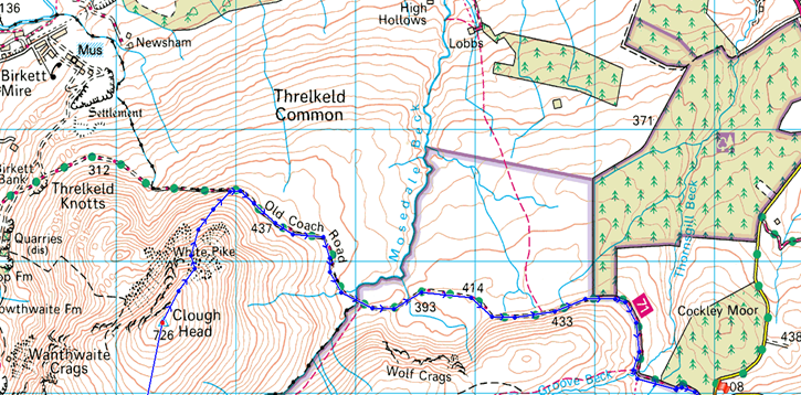 Boxing clever avoiding the wet areas with Randerside & Great Dodd to our flanks. |
