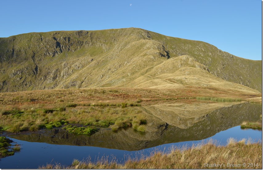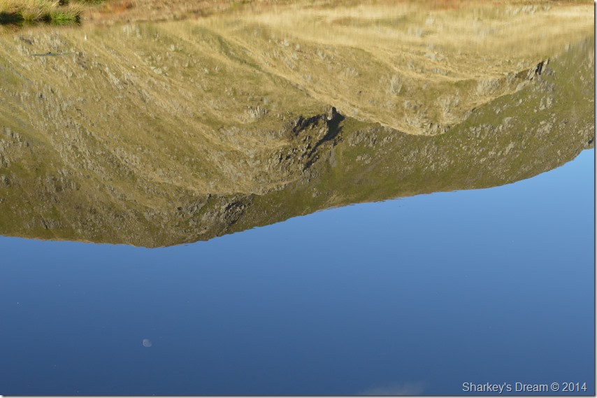 I made sure to keep to the left shortly after leaving Rough Crag summit, this descent would lead me via a narrow grassy path directly towards the Tarn where the calmness of the morning transpired in reflections… |
