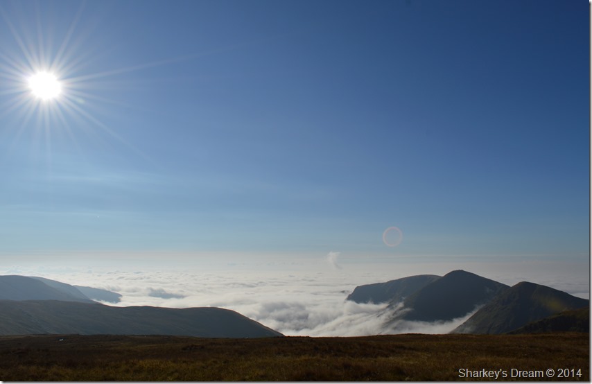 I had soon reached the summit of Rampsgill Head where I met the first person I’d seen on todays walk, an elderly gent was throwing his pack over his shoulder as we both commented on just how great and (unexpected) the weather was. He hadn’t seen the cloud inversion properly as he had come from the direction of High Raise, your timing is perfect I explained, it looks like it is waiting to spill over into Mardale, but there just isn’t enough wind behind it I said, well that’s the way I’m heading he replied, with some luck I’ll get to see it all unfold. |