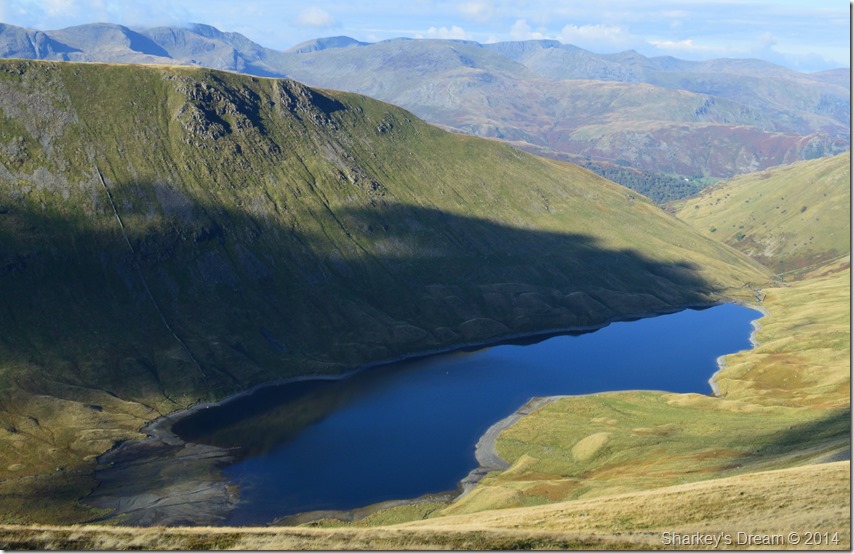 When viewing Blea Water from the Rough Crag ridge it really isn’t hard to imagine why Blea Tarn is the deepest Tarn & indeed the third deepest body of water in the Lake District, only Wast Water at (74m) and Lake Windermere (67m) are deeper.