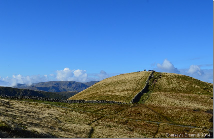 Ahead The Knott lies in wait along with a mass of walkers who had just claimed the summit moments earlier. They number well above fifteen as they envelope & swallow the large summit cairn with their presence, I squeeze through with a smile, tapping the stone cairn with my walking pole before anyone really noticed I had been there at all. |