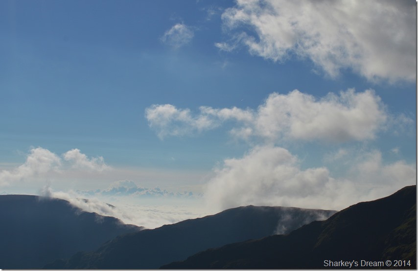 Here I zoom in on the top of the Nan Bield Pass as the Cloud Inversion once again, begins to creep its way over the ridge from Rampsgill Head summit. |
