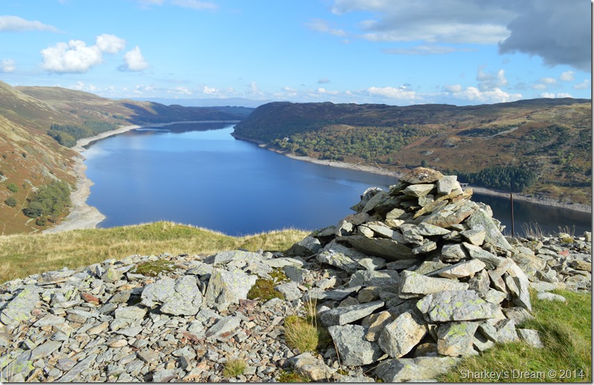 Haweswater Reservoir from Castle Crag (Mardale) summit cairn. |