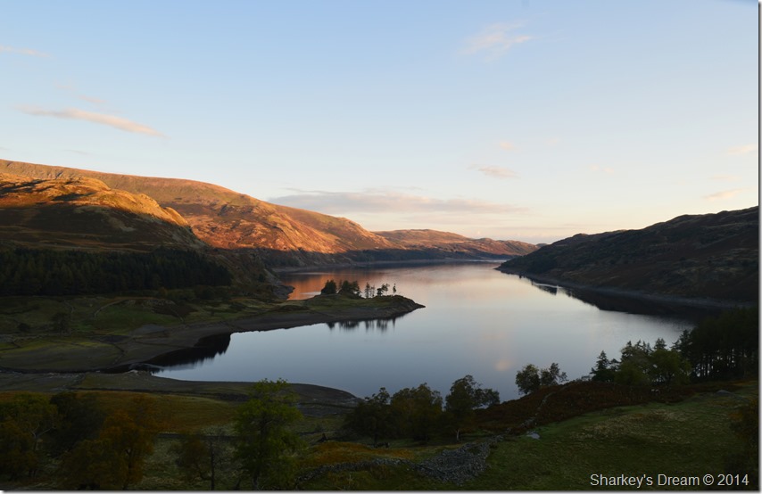 I stopped my car just short of Rowantreethwaite Beck where I scaled a rocky outcrop that over looked Haweswater Reservoir. The sun hadn’t breached the tops leaving the valley in a pre dawn state complemented by a morning chill that bit at the tops of my ears.