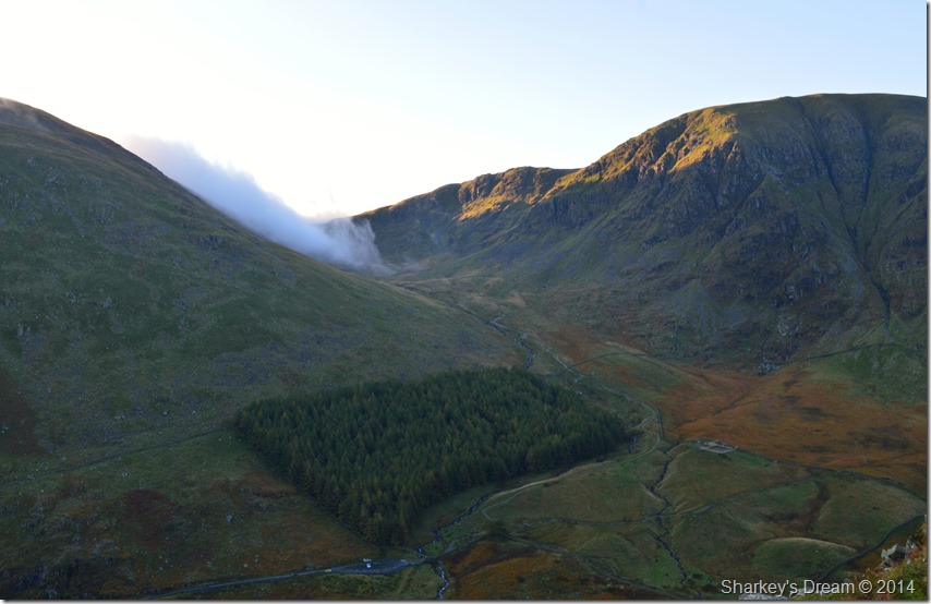 I arrived back at my car which was still nice & warm & a world away from the morning chill here in the valley. From here it was just a short drive to the large car park at the head of the valley, a place whose only inhabitants are a camper van & two neatly parked cars that had been there all night given the dew that had gathered over the windows.