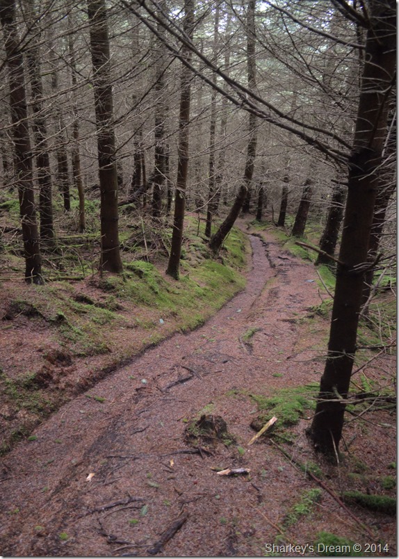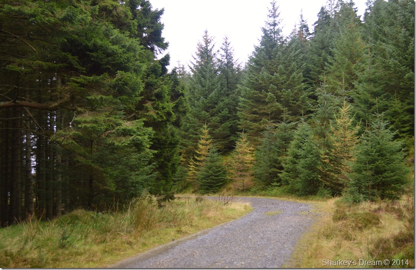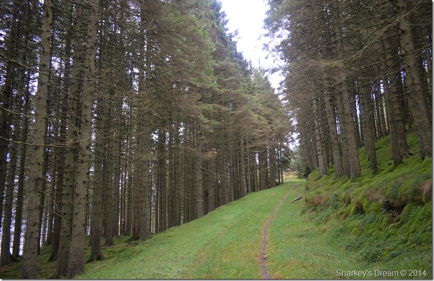 Once we had reached the track alongside the forest a sense of calmness ensued followed by the sound of the high winds as it howled through the forest plantation to our flanks. The calmness I of course am referring to is the protection that the trees gave us all the while they were taking a battering from the high winds above our heads.