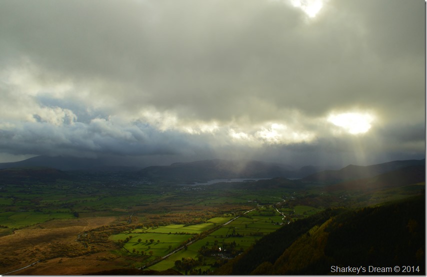 Dramatic views over Derwent Water & Keswick from Barf summit. |