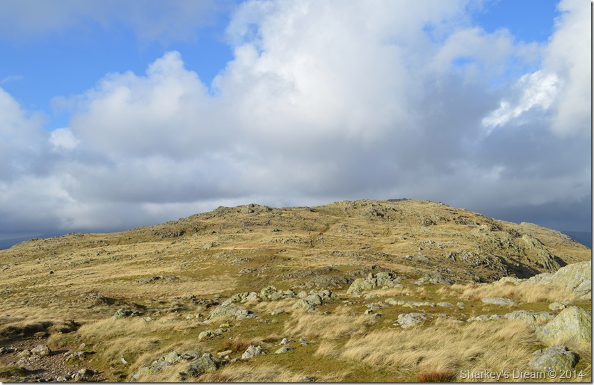 The change in contrast continued the further I got up the ridge, as I stopped to pause to look over at Swirl Hawse a group of walkers picked their way up Prison Band bound for Swirl How seen in the left of the photo. |
