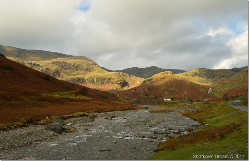 After leaving Miners Bridge behind options & routes soon opened up before me, my route today will see me pass in front of the white YHA Cottage seen below Kennel Crag where I will follow the mine track before ascending towards Levers Water by Levers Water Beck (Simon’s Nick) seen in the upper centre of the photo. |