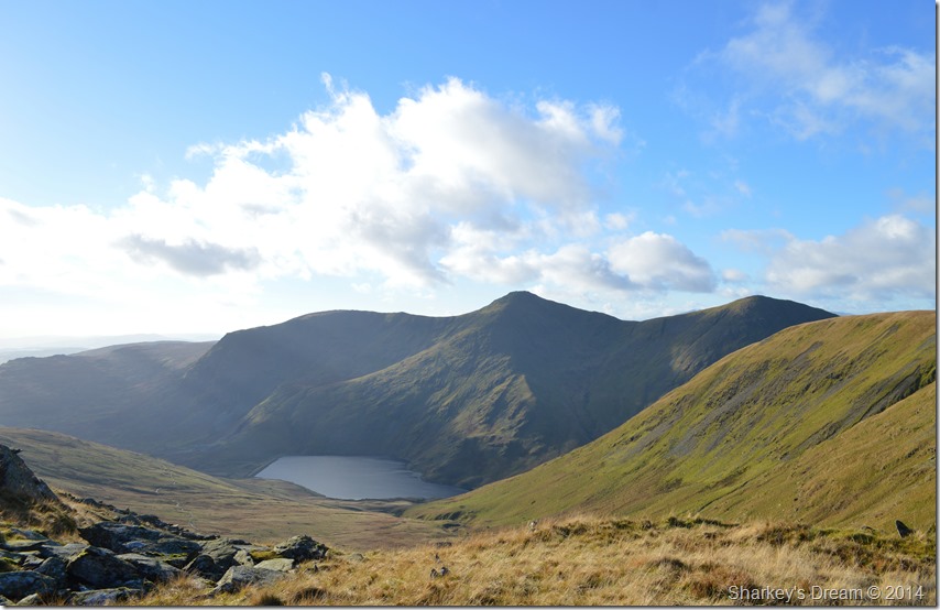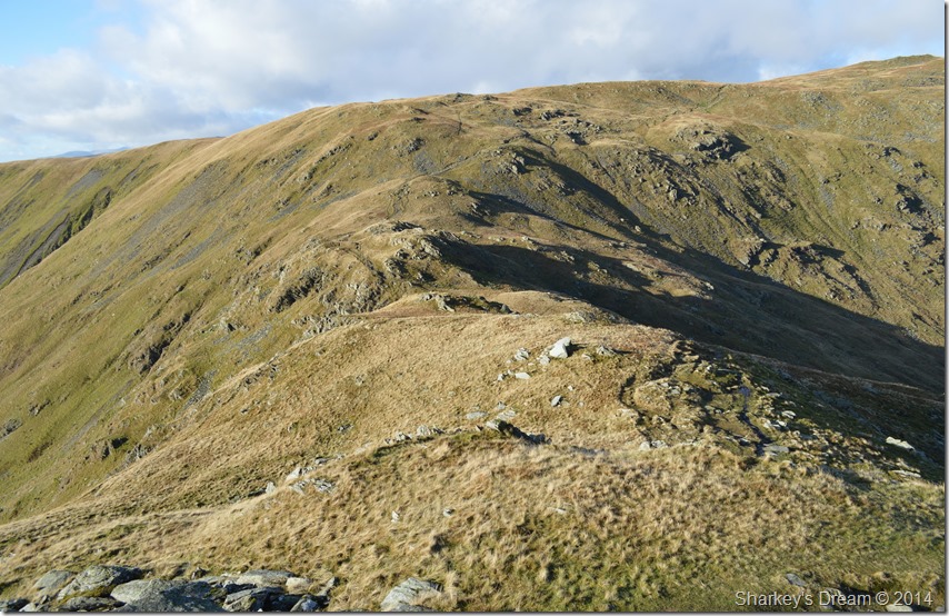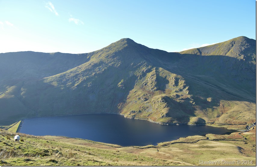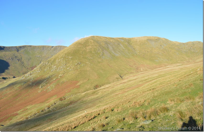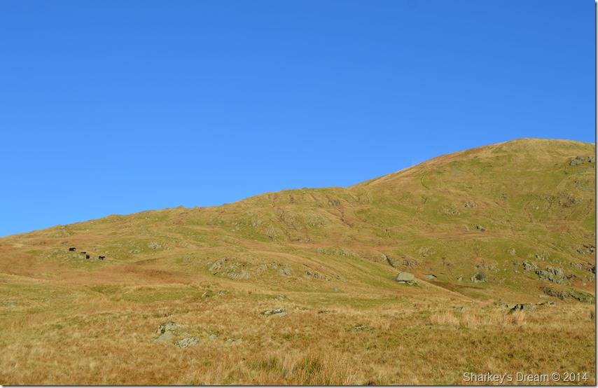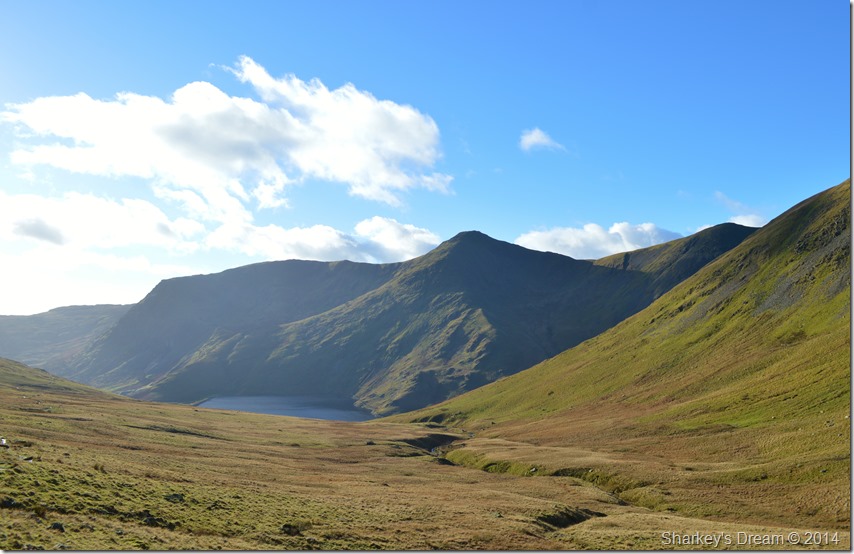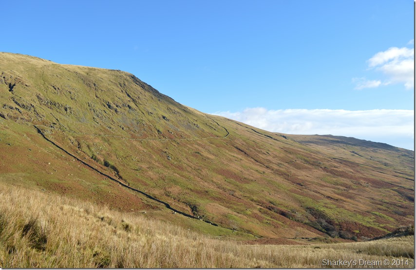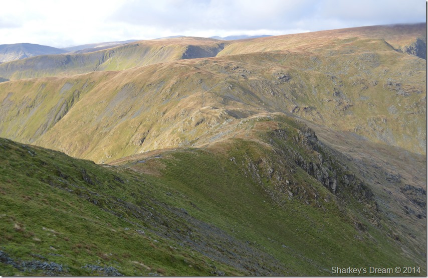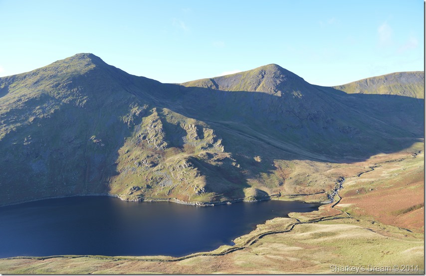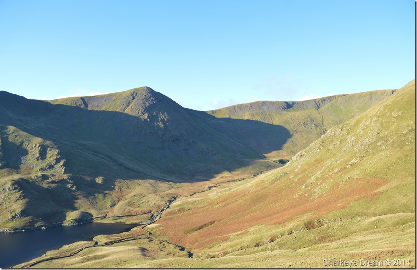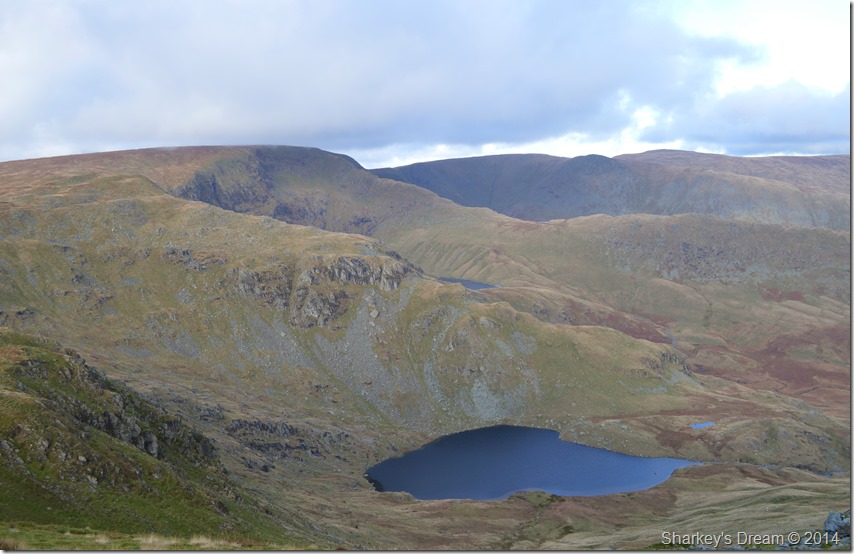 I had two options to descend by, one of which was a direct descent over the nose of the ridge where the path descends sharply in a series of zig zags, my route however was a narrow band of path with views over Small Water & beyond, both paths meet close to the centre left of the photo, don’t worry if you can’t see my path in this photo as I left it out on purpose. |
