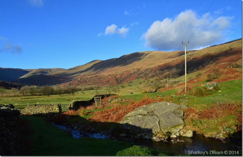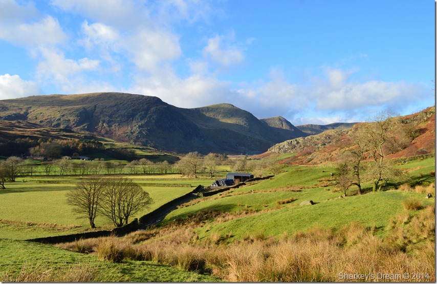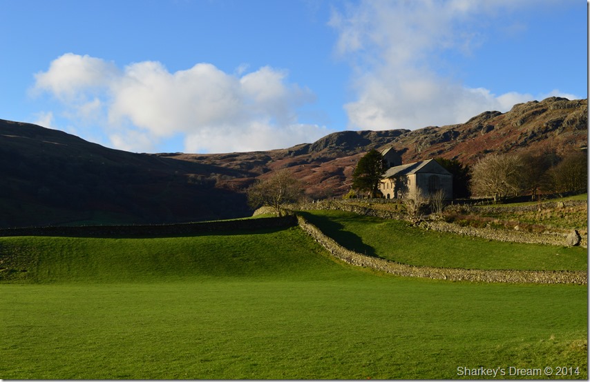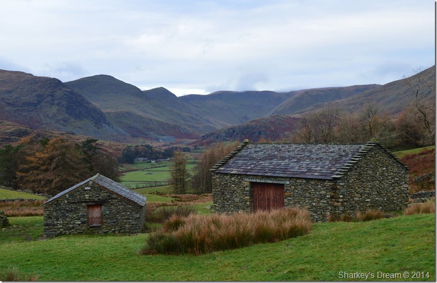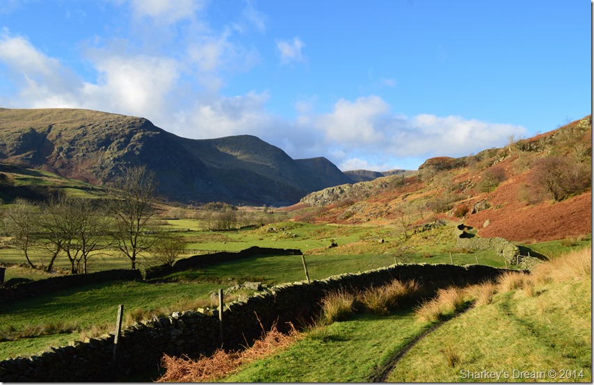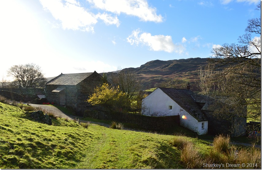 By the time I had reached Overend Farm my views back into the valley were becoming more & more restricted by the craggy spurs of Tongue Scar. However my walk was far from over as I passed through Overend where vivid memories rush back to a time I was almost attacked by a herd of sheep who had just given birth to new lambs, it’s funny how memories attach themselves to places isn’t it, nonetheless a beautiful farm situated within the heart of the Kentmere valley. |