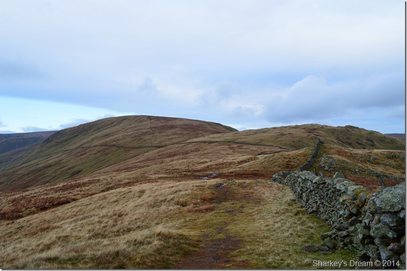 Kentmere Pike was soon reached where I took some shelter behind the stone wall before de shouldering & pulling out a Snickers bar for breakfast. Before I had reached the summit another walker had caught my eye close to Shipman Knotts, I figured he or she may be fast on my tail so summit time at Kentmere Pike was a little brief.