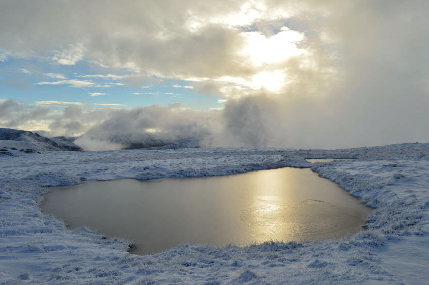 A fellow on his own with two Golden Labradors was also at the summit as he shouted over the wind ‘winter at last!’ we laughed of course referring to the fact just how cold it had gotten all in the space of a few short ten minutes, we shared a laugh as the snow shower passed. |