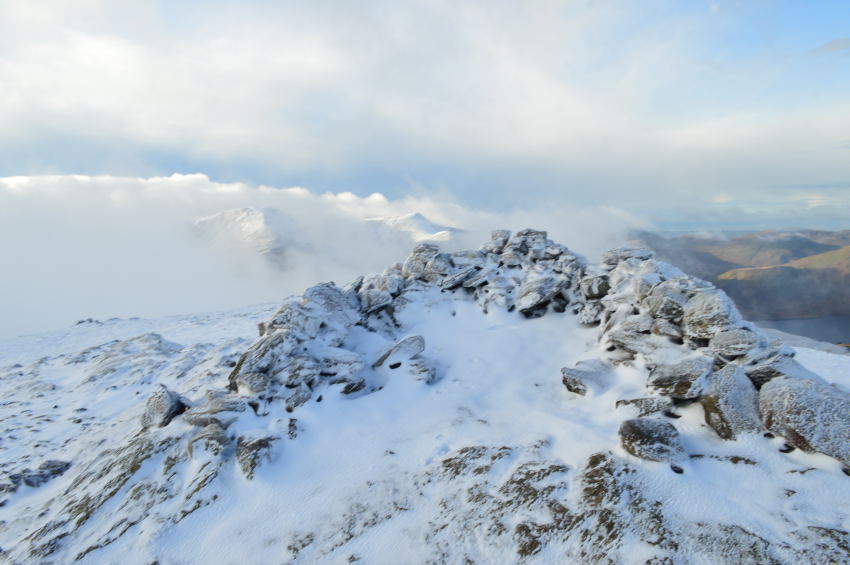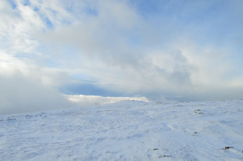 We were about to crest the summit shoulder and was well within the snowline now which was very powdery underfoot, in terms of depth it wasn’t much more than a couple of inches and was a pleasure to walk over and didn’t cause any difficulties with the rest of our ascent. |