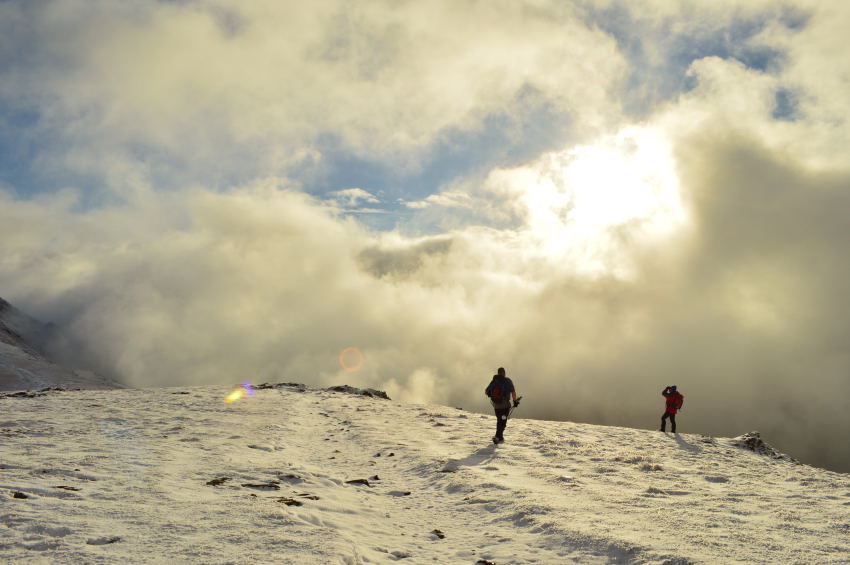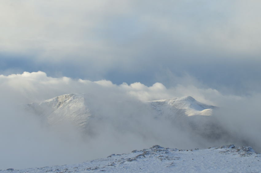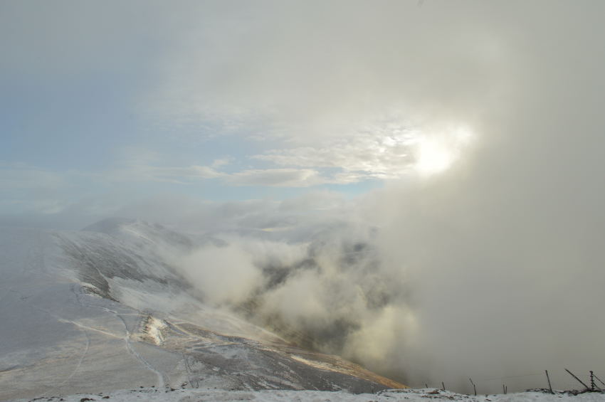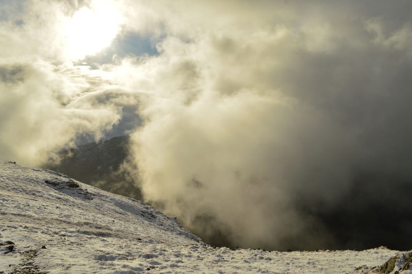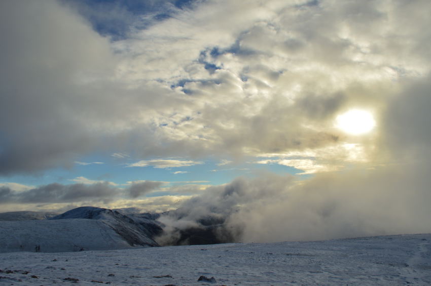 It was still mild and we were still in good banter but thoughts undoubtedly had turned to the fact that the cloud had beaten us, and with it, came a snow shower followed by strong gust.