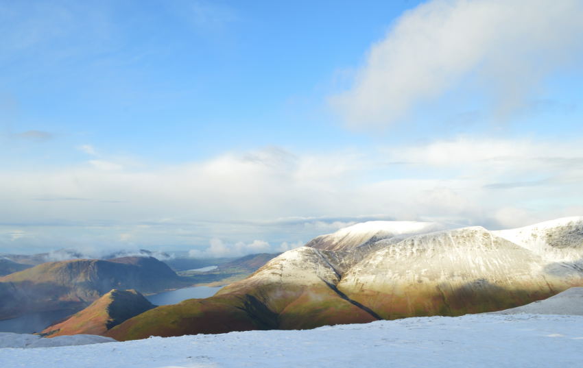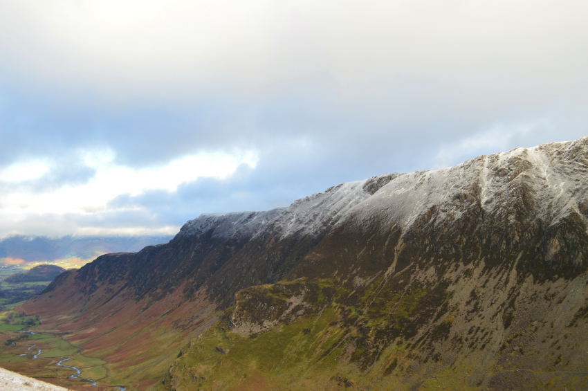 Looking north west a host of snow capped north western fells whilst down below views extended as far as Loweswater but sadly they weren’t to last as above the vale of Buttermere the cloud like a thick blanket was starting to roll in. |