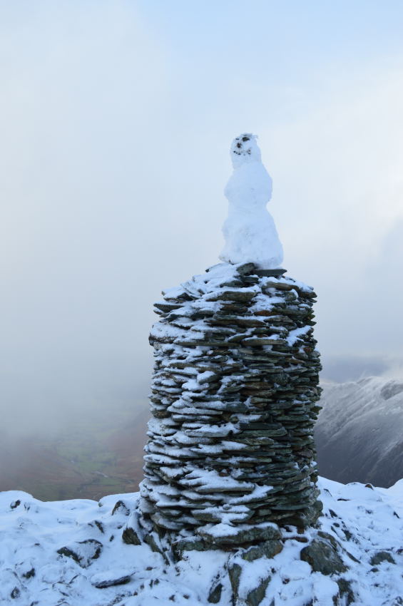 It’s a snowman, who the bloodyhell had managed to build that there, we cracked a few jokes before being joined by a couple who wanted to have their photo taken with the smiling snowman of Dale Head.