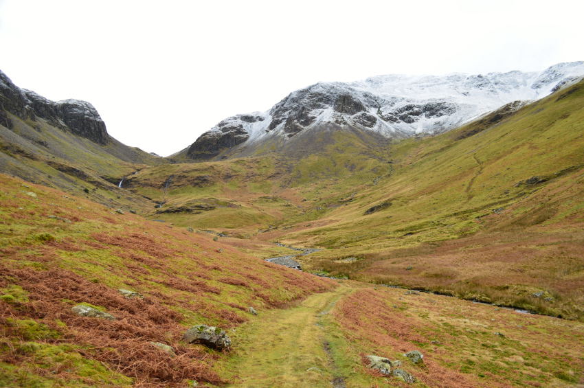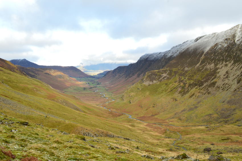 It was a mild morning yet just up the valley we could see the summits of both Hindscarth & Robinson had a good dusting of snow on them so we all kitted up in full winter kit including a reluctant decision to include the crampons, well you know, we may need them we thought.
