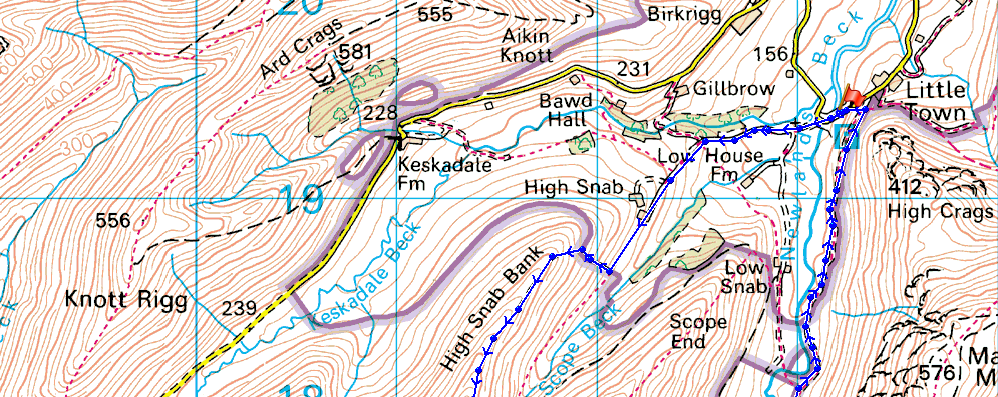 Chapel Bridge – Newlands Church – Low High Snab – High Snab Bank – Blea