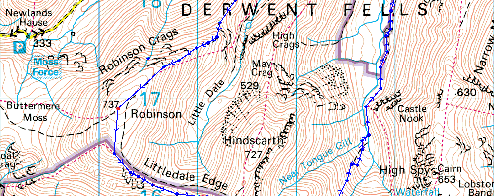 Crags – Robinson – Littledale Edge – Hindscarth Edge – Dale Head – Miners Track –
