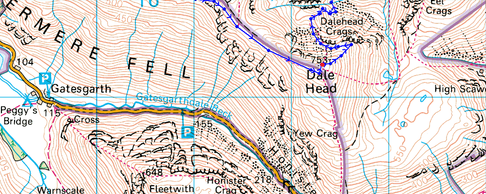 The fellow we kitted up with who had the Black Labrador with him had just passed us along Littledale Edge, we did see a figure on Hindscarth but didn’t realise it was him until now. What we did find a little odd was how the fellow avoided the branch of path (seen left) and descended Hindcarth from higher up (seen right)