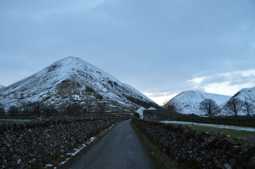 My hat & new gloves had been pre-warmed on the passenger seat which only left me to tie up & throw my jacket on, checking I had everything I closed the boot & locked the car before heading through the hamlet of Hartsop once more, this time by foot.