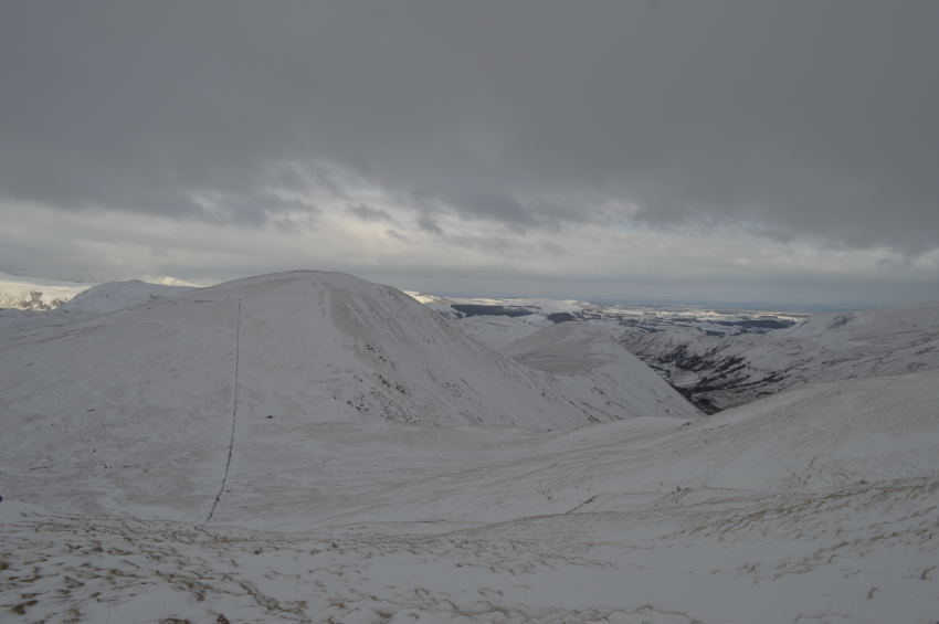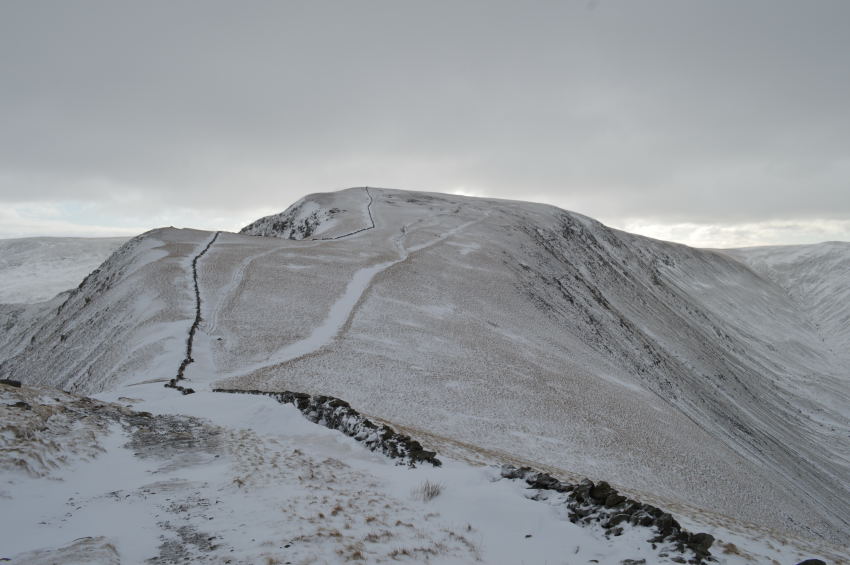 I soon left the tricky drifts behind as my heart rate began to return to normal, my thighs ached a little through lifting them in & out of the deep snow but other than that I was good to go, long gone were the thoughts of cutting the walk short as an ascent on The Knott now lay ahead. |