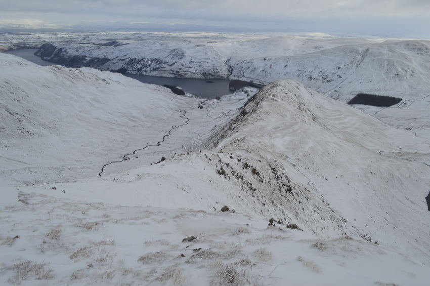 I felt I had coped well with the severe wind chill, that was until I passed the top of Hayeswater Gill (R) where the wind chill blew so cold this was undoubtedly the coldest part of the whole walk, a part of which I yearned for the shelter Thornthwaite Crag would provide.