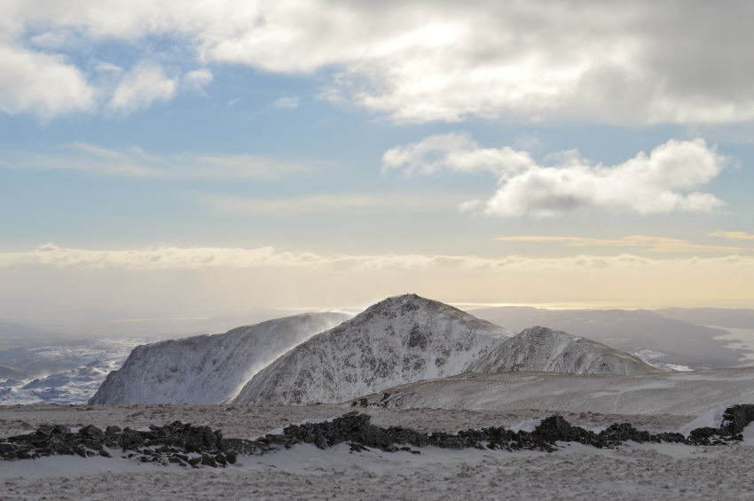 My ascent on The Knott although steep was like a clear breath of fresh air, the guys that I had seen from Satura Crag had long gone & so to had their footprints as they succumbed to the spindrift helped along by a fiercely strong & cold wind.