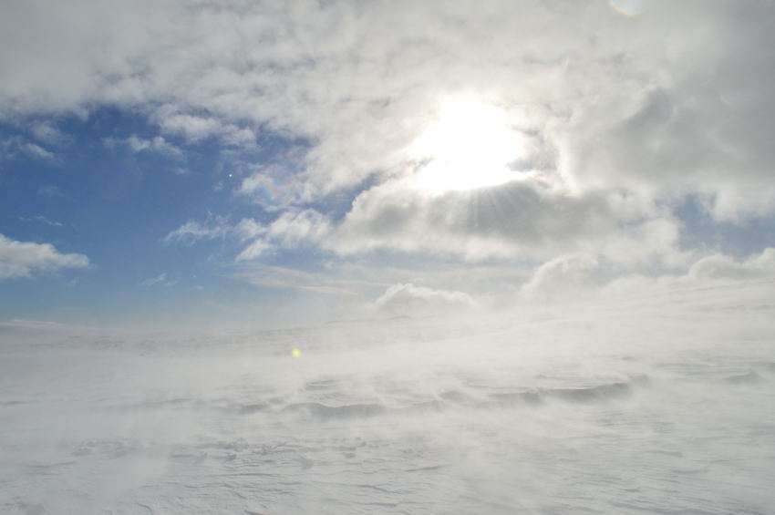 I kept to the grassy tussocks who’s needles could just be seen above the snow, these meant I wouldn’t punch through any accumulated drift although at times this was unavoidable.
