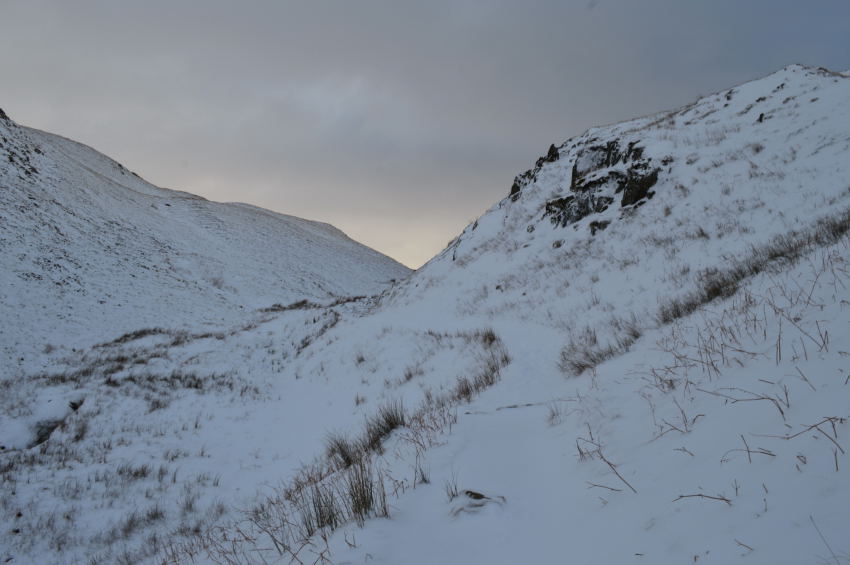Although the path was deep with snow gaining height here was done by keeping to the edges of the path where the grass poked through the snow, which meant a good percent of the time made for good purchase.