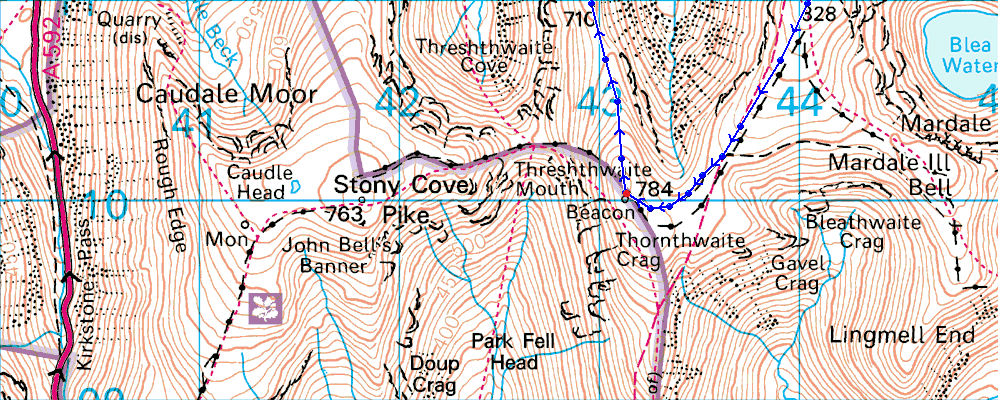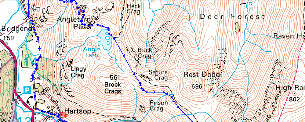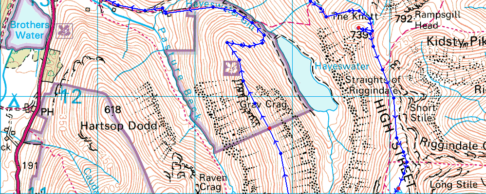 Hartsop – Dubhow – Boredale Hause – Angletarn Pikes – Angle Tarn – Satura Crag – The Knott – Straights of Riggingdale – High Street – Thornthwaite Crag – Gray Crag – Hartsop |