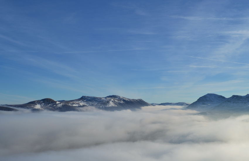 Pillar seen with the High Stile Ridge towering about a sea of cloud beneath Ennerdale Water. |