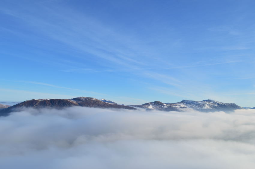 By the the time I had reached Penruddock Blencathra’s summit was peaking out over a sea of mist which clung to her lower slopes almost enveloping the whole of Threlkeld until I passed through what I thought was valley mist soon after flanking Keswick.