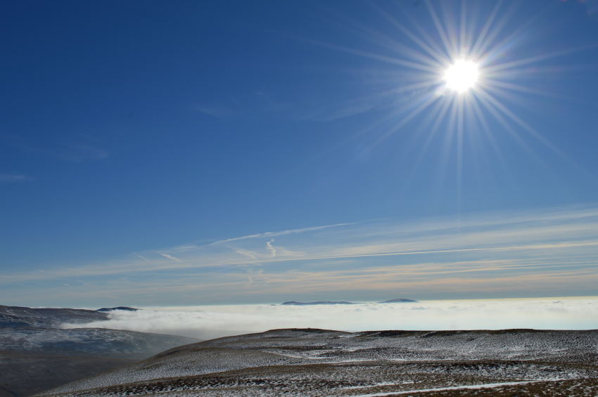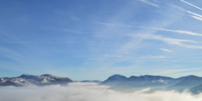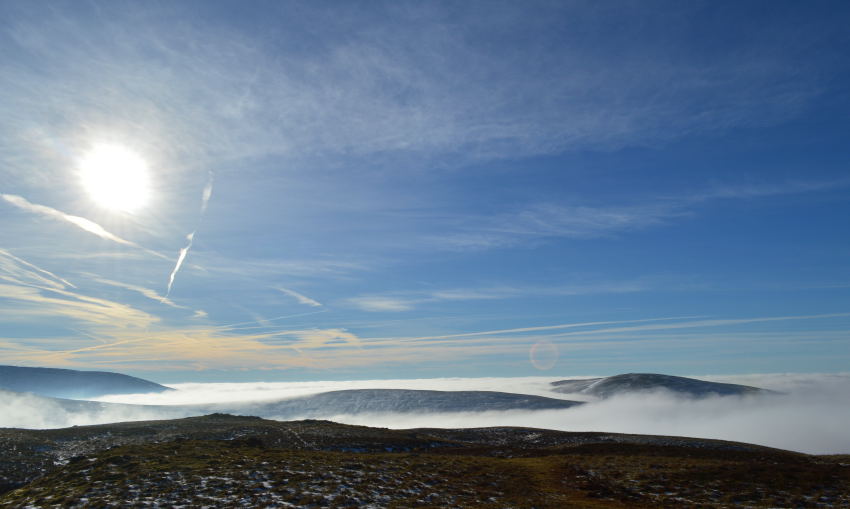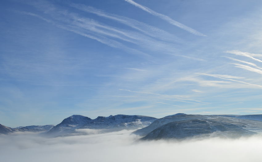 The sweat we had conjured had started to freeze on our backs as we stood summit watching from our perch beneath Crag Fell summit, we knew at one point we would have to turn our backs on the Inversion perhaps in search of something more spectacular as we re-traced our steps back towards the summit. |