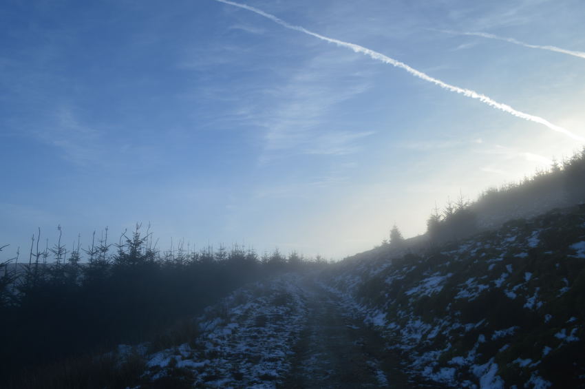 We followed the path south which saw us steadily sink beneath the cloud where we would pick our way through Black Pots, it was less than three years ago when this area was home to dense Forest before the Forestry Commission cut the whole lot down in the name of regeneration I guess, we remarked that it might be out of our lifetime until Black Pots would ever look the same again.