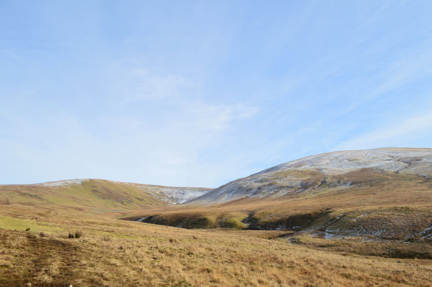 Our descent was via a faint grassy path which lead us (thankfully) across frozen grassy hummocks which if you plotted well, were easily avoidable, nearer to the River Calder however our ground understandably became more marsh like as boots would sink into the ground quickly followed by a slurp as we dragged our feet from the marshy ground.