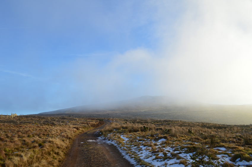The misty theme continues as we climb higher towards Crag Fell from Blakeley Moss. |