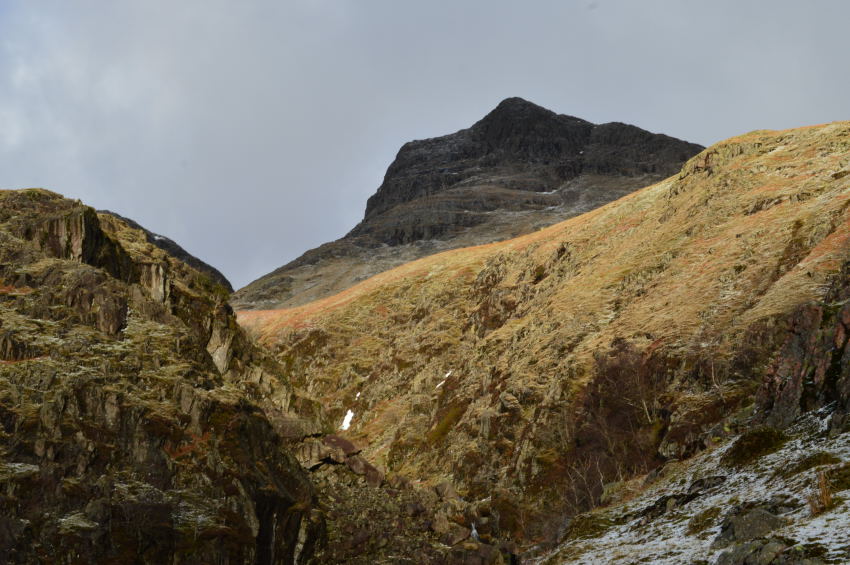 Harrison Stickle seen over Dungeon Ghyll middle ravine. |