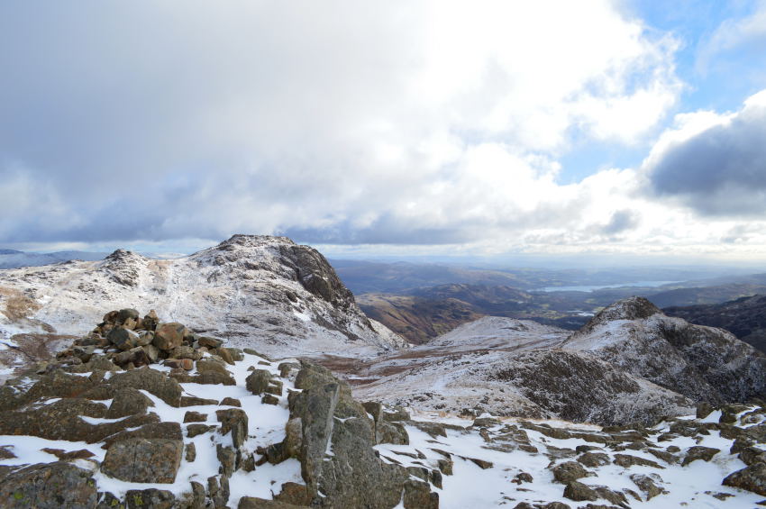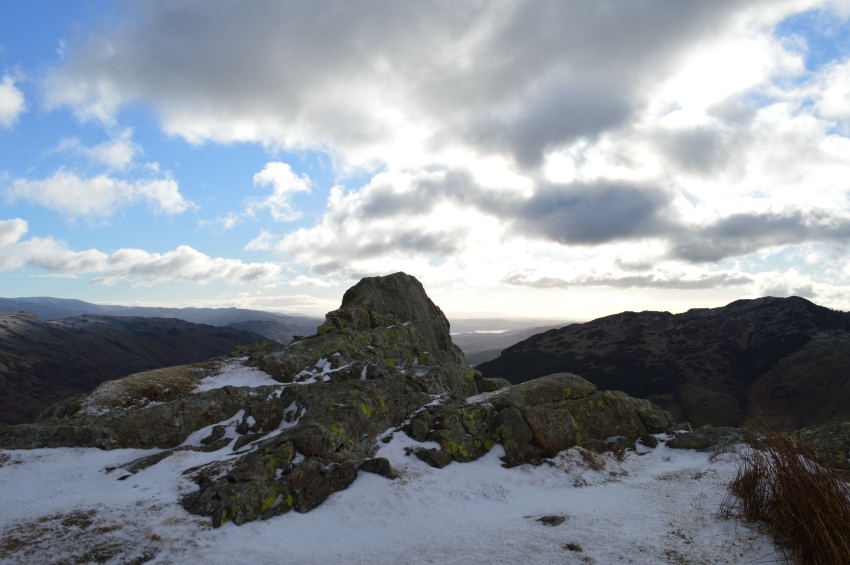 I was soon at the the summit where I was treated to fine views over Great Langdale but nothing could take the thought away from the wind that bit at the side of my face, only a couple of summit shots were sadly taken here. |
