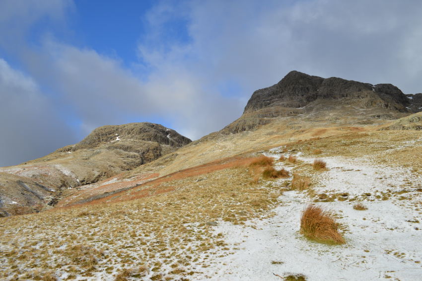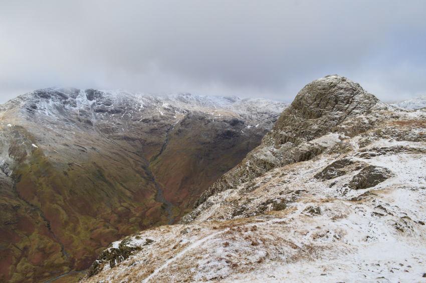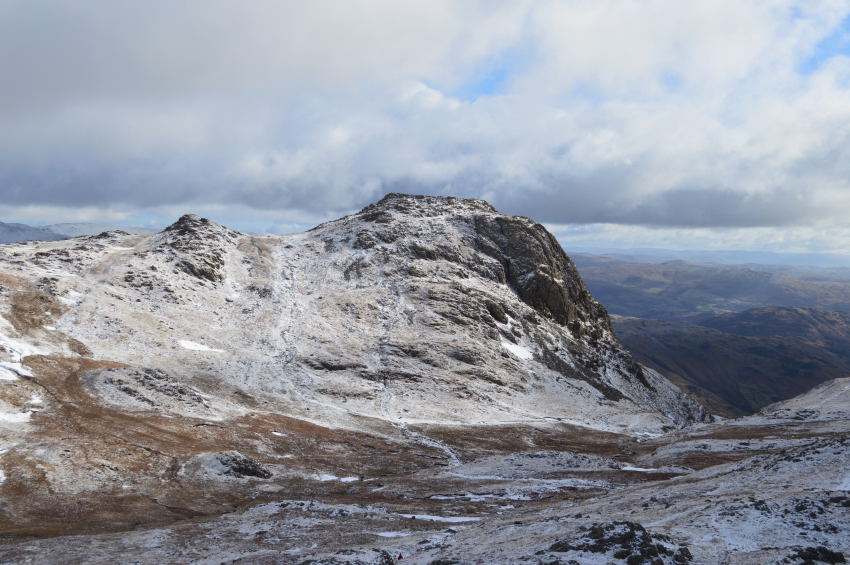 Thorn Crag & Harrison Stickle seen across the saddle ridge. |